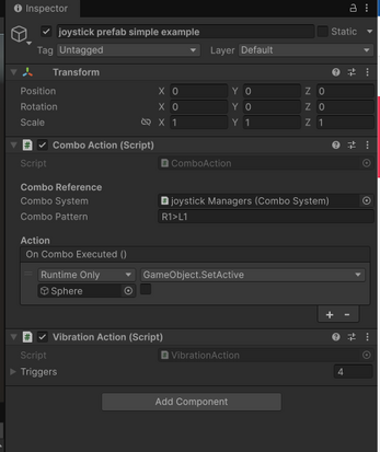 - Combo system: register any button sequence and bind actions to it